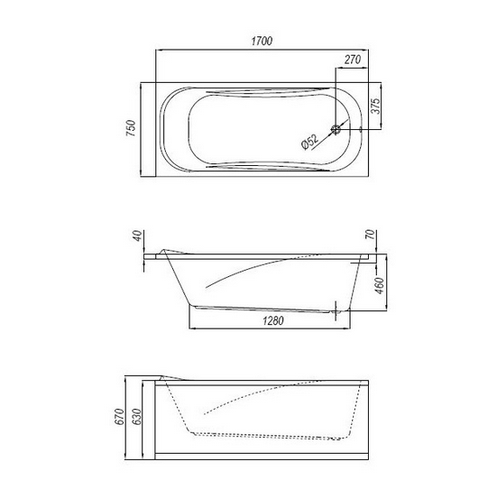 Количество форсунок для гидромассажа 6 форсунок, механический слив/перелив