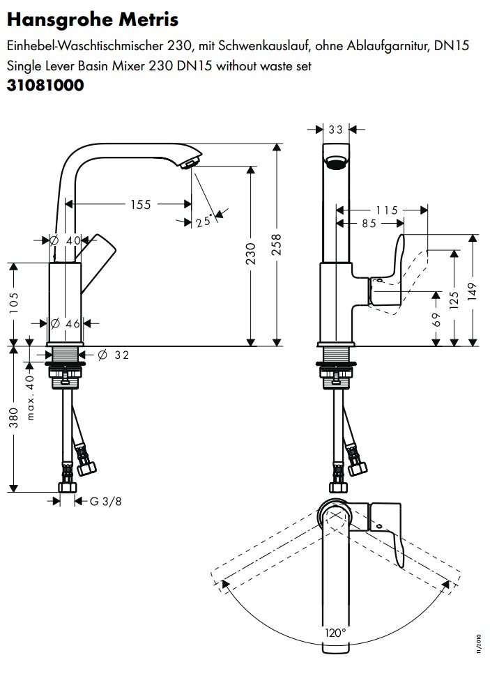 ComfortZone (высота до излива) 230мм.Без сливного гарнитура.Поворотный излив 120°.Керамический узел смешивания.Регулируемый ограничитель температуры воды.Ограничитель расхода воды 5 л/мин.Аэратор QuickClean против известковых отложений.Гибкая подводка с накидной гайкой ⅜.Подходит для работы с проточным водонагревателем.