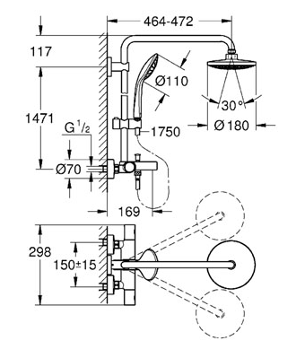 Душевая система с термостатом для ванны