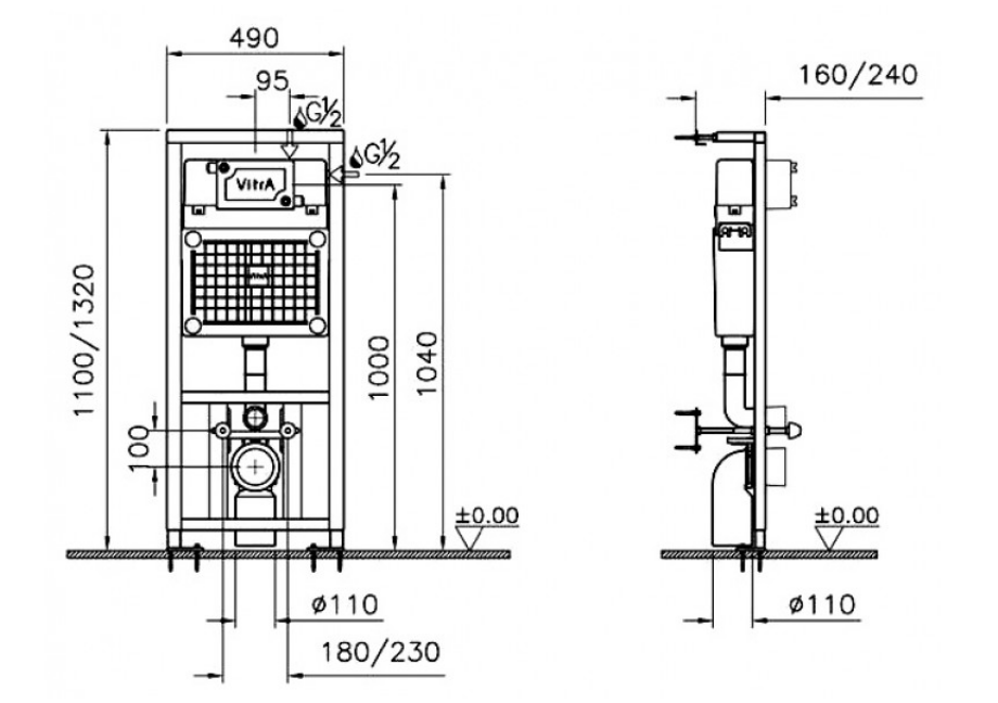 Vitra Normus Унитаз подвесной + сиденье + инсталляция + кнопка