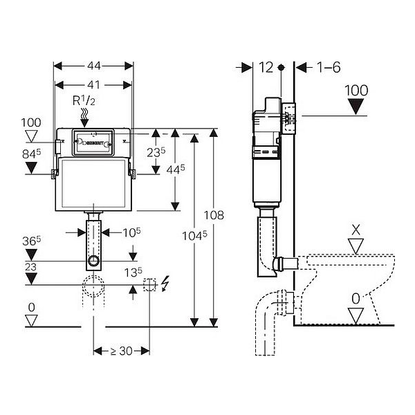 Бачок смывной Geberit Delta 109.100.00.1 скрытого монтажа, 12 см, 6/3.5 л Артикул: 109.100.00.1