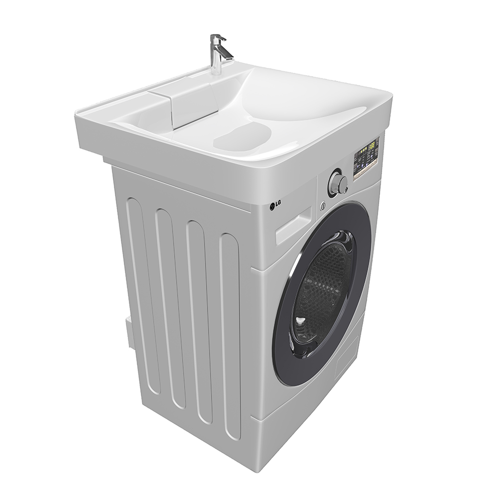 Функциональная раковина Laundry (Лаундри) разработана специально для малогабаритных ванных комнат, в которых установлена стиральная машина с фронтальной загрузкой белья.
