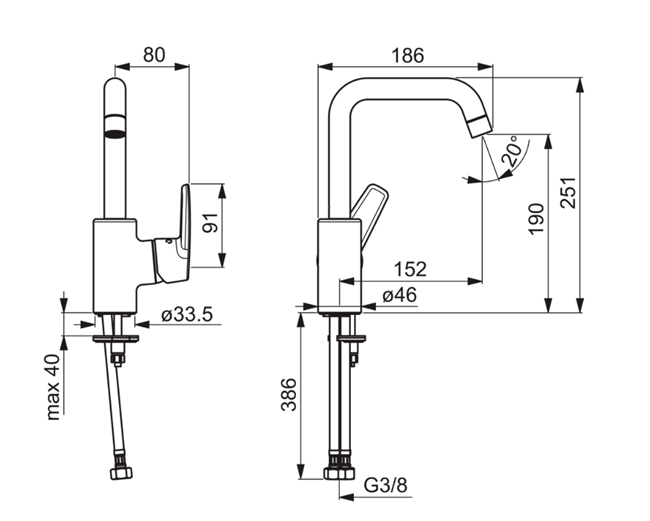 Oras Saga Смеситель для умывальника с высоким поворотным изливом