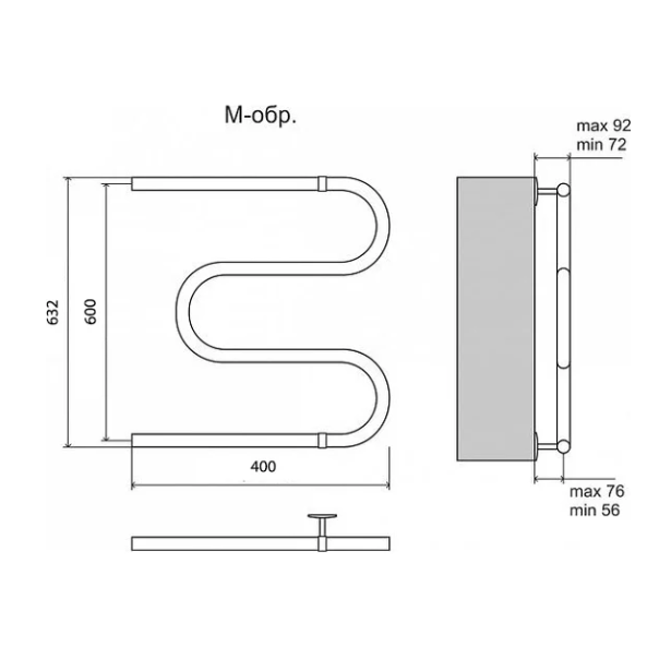 Полотенцесушитель Terminus Trend (ЭКОНОМ) водяной М-образный 400*632 бп 600