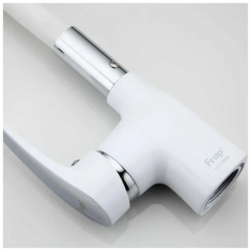 Frap Смеситель для кухни d-35 на гайке макси белый/хром Артикул: 4453-03