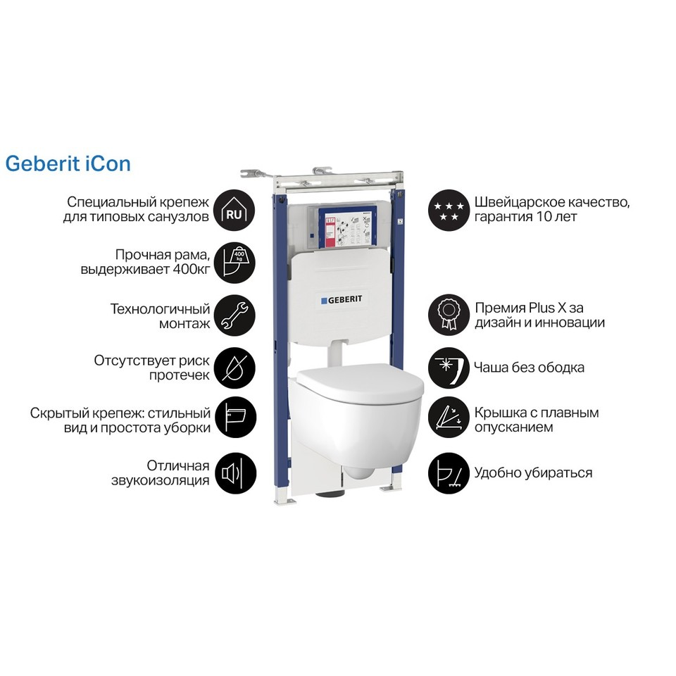 69990  ₽   купить дешево Комплект инсталляции Geberit Sigma Платтенбау 500.362.00.i с унитазом Icon