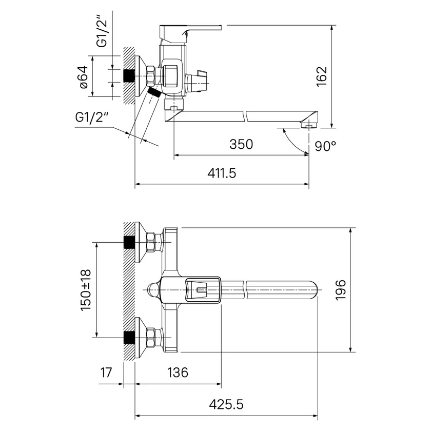Смеситель для ванны Iddis Bild с длинным изливом Артикул: BILSB00i10WA