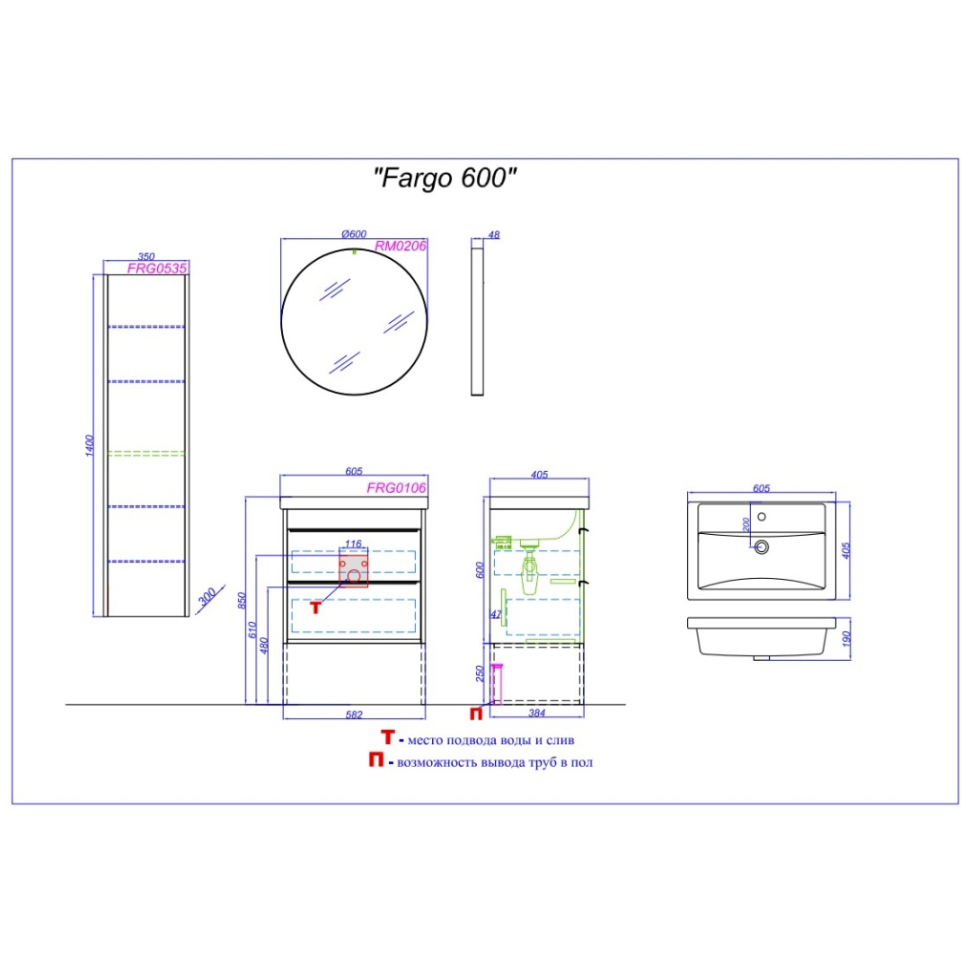 Тумбы в четырёх размерах 60, 70, 80 и 100 см по ширине комплектуются керамическими умывальниками серии Фостер.