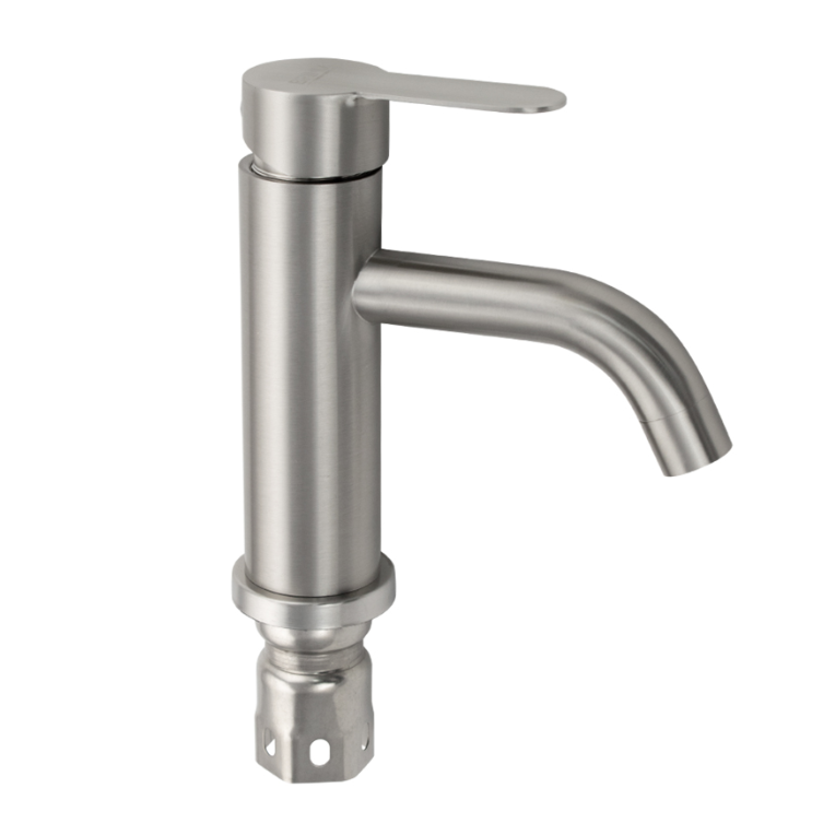 Стильный и надежный смеситель из литой нержавеющей стали 304 марки с матовым сатиновым покрытием. Компактный дизайн с коротким изогнутым изливом и литой рукояткой идеально подходит для установки в ограниченном пространстве. Модель оснащена шаровым механизмом и 35-мм картриджем для плавной регулировки воды, аэратором для экономии расхода и предотвращения брызг.
