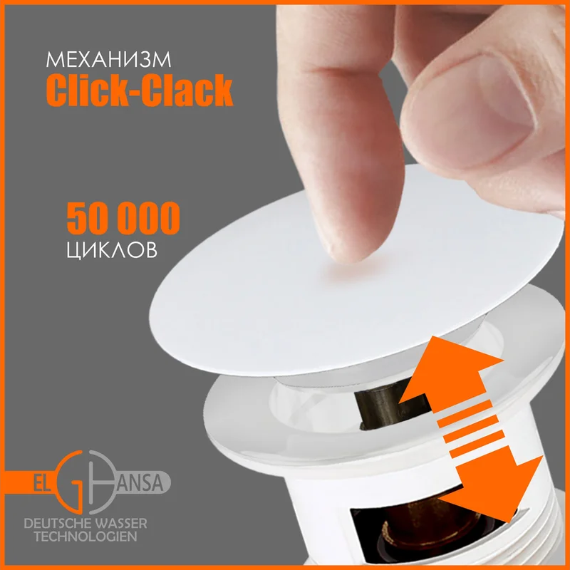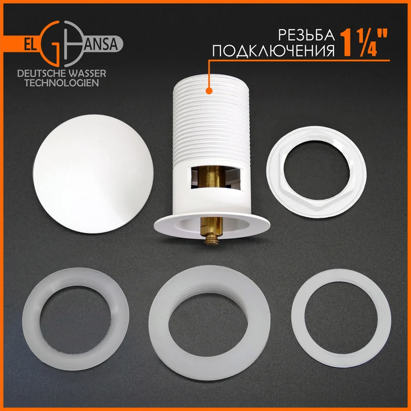 Донный клапан Elghansa SoftLine для раковины 1 1/4" (с переливом) Click-Clack, белый Артикул: WBT-122-White