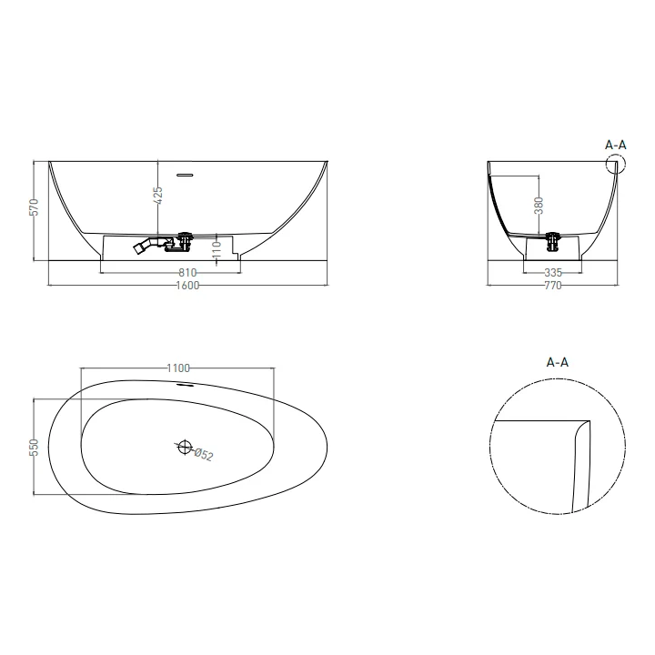 Ванна из литьевого мрамора Salini Paola S-Stone 160x75 см, отдельностоящая, матовая белая, овальная Артикул: 101511SM
