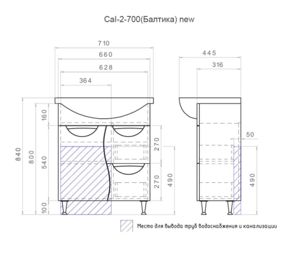 Тумба напольная Vigo Callao 700-1-2 1д, 2ящ (под умыв. Балтика 70)