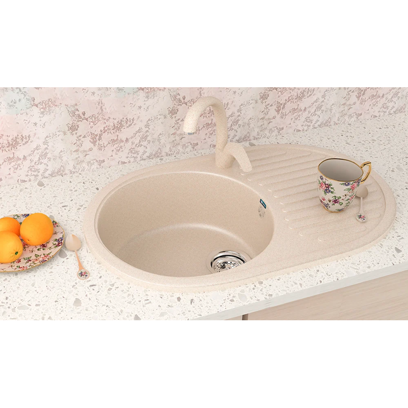 Кухонная мойка Ulgran U-107-328 функциональна, надежна и долговечна. Изделие изготовлено из искусственного мрамора, отличающегося износостойкостью и высокими эксплуатационными характеристиками. Благодаря входящей в состав мраморной крошке и акриловой смоле материал в несколько раз прочнее натурального мрамора. Смола после обработки полностью безопасна для здоровья. Покрытие гелькоут гарантирует гигиеничность изделия: на его поверхности не скапливается грязь и не размножаются бактерии, мойка легко чистится при помощи губки и моющих средств. Дополнительную прочность придает двухконтурная поверхность чаши с шероховатым дном и гладкими стенками. Во время мытья посуды даже при сильном напоре воды нет брызг и шума.