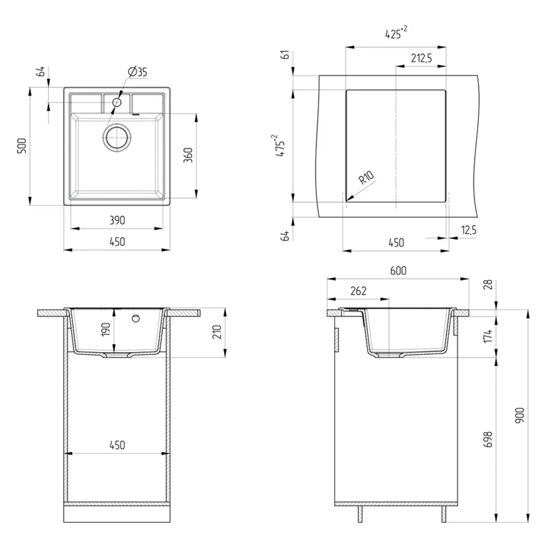 Диаметр слива: 9 см