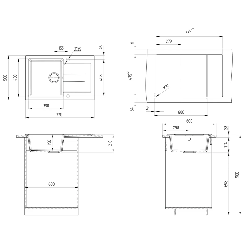 Двухконтурная поверхность чаши с шероховатым дном и гладкими стенками обеспечивает дополнительную прочность мойки и противоскользящий эффект, а также исключает разбрызгивание воды даже при сильном напоре