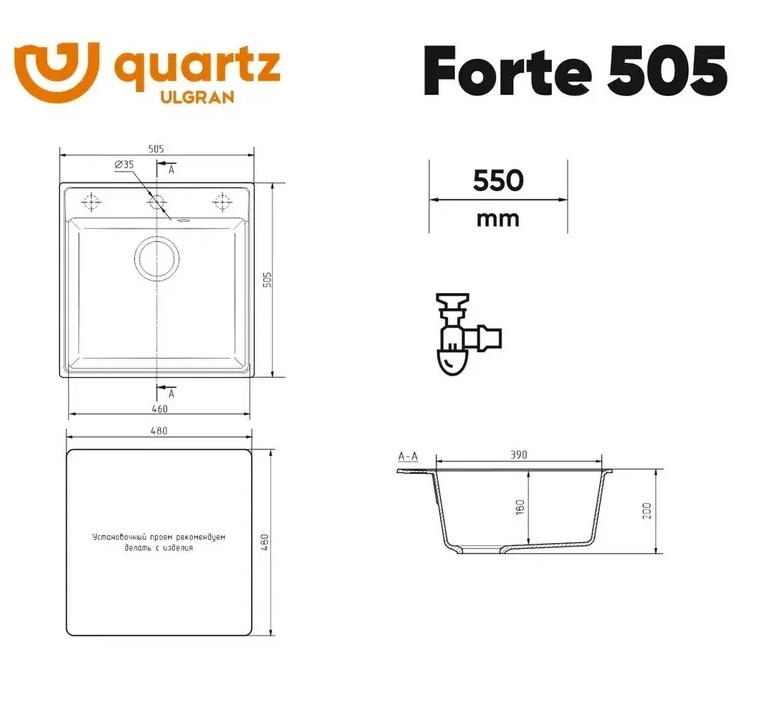 Кухонная мойка Ulgran Quartz Forte 505-05, бетон Артикул: Forte 505-05