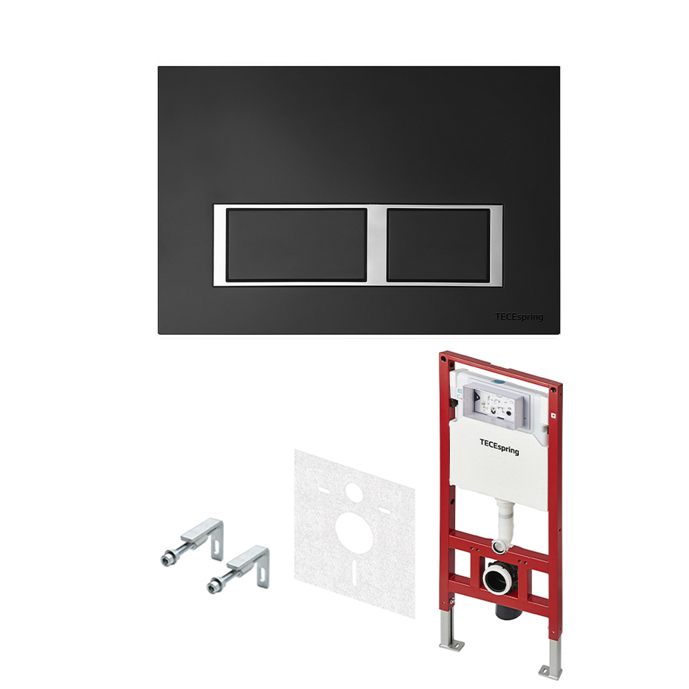 Комплект с клавишей смыва TECEspring S955202 с прямоугольными кнопками, черный матовый Артикул: S955202