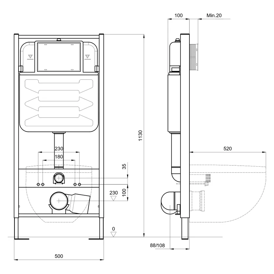 Монтажная рама Aquatek Standart 50 без клавиши и крепления 1130*500*100 для подв унитаза+звукоизоляц Артикул: INS-0000012