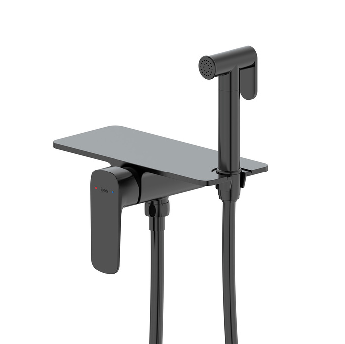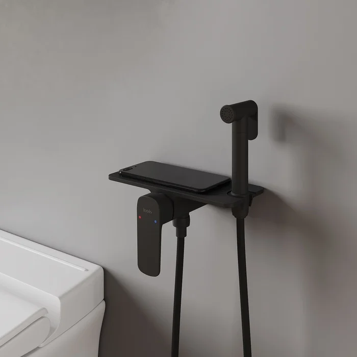 Смеситель встраиваемый Iddis Axes AXEBLSHi08 с гигиеническим душем, полка, черный Артикул: AXEBLSHi08