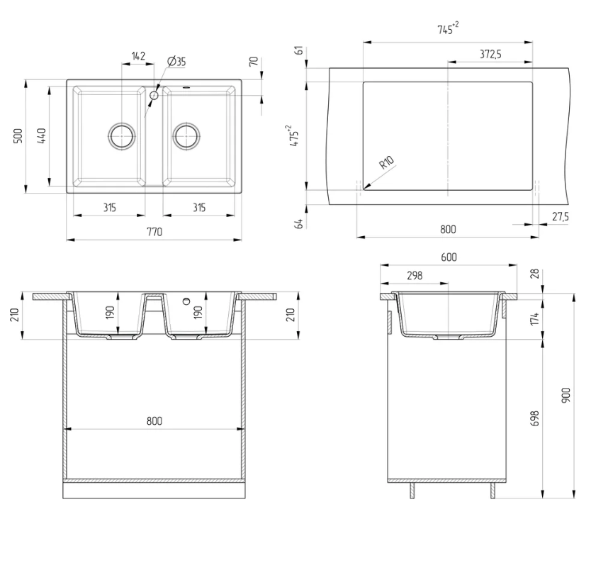 Диаметр слива: 9 см