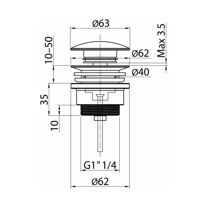 Донный клапан Elghansa SoftLine WBT-227-Black 1 1/4" для раковины (универсальный) Click-Clack, черны