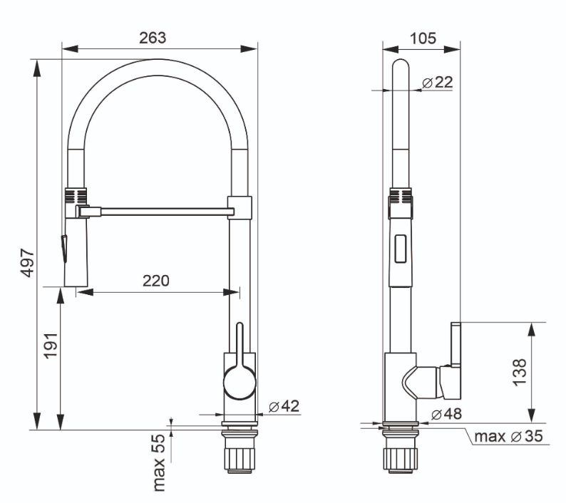 Гибкий излив более маневренный, чем обычный, и позволяет настроить высоту и угол излива под любые нужды