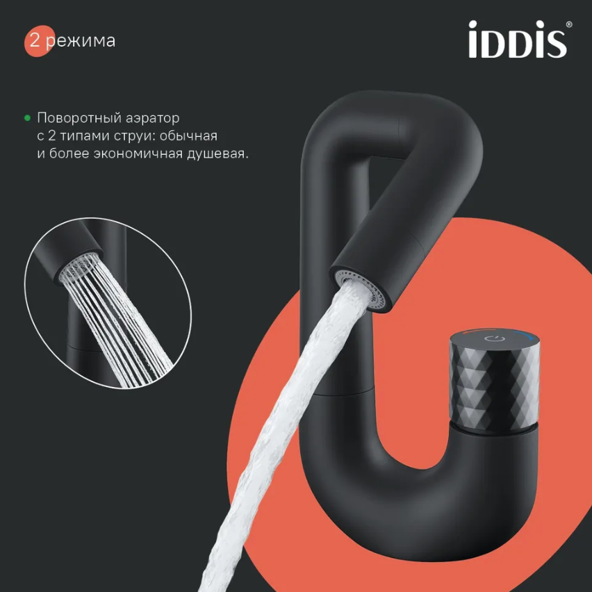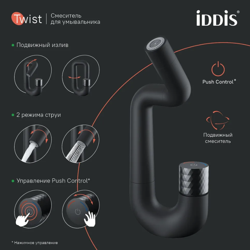 Смеситель для раковины IDDIS Twist TWIBLBTi01 матовый черный с управлением Push Control Артикул: TWIBLBTi01