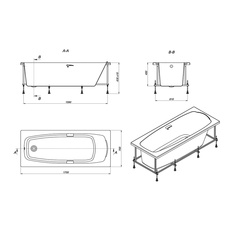 Акриловая ванна Roca Sureste 170*70 на каркасе Артикул: ZRU9302769+ZRU9302771