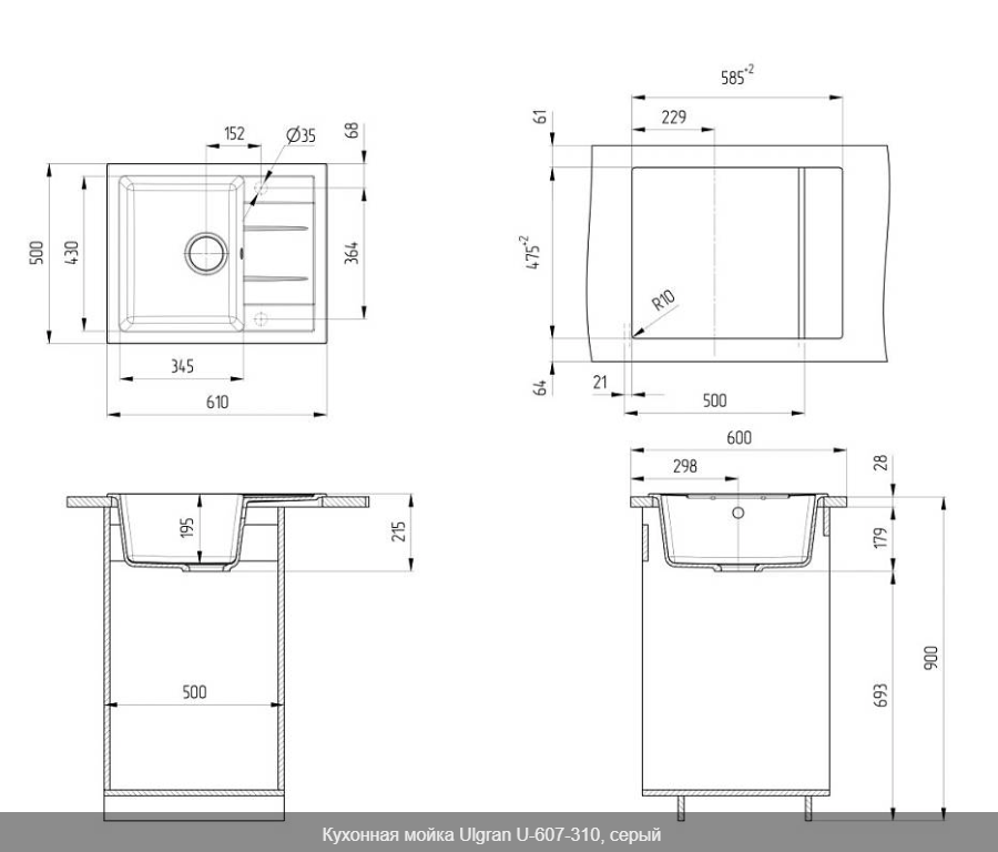 ULGRAN U-607 - односекционная компактная реверсивная кухонная мойка. Данная мойка устанавливается в шкаф шириной от 50 см, является оборачиваемой и подходит для малогабаритной кухни. В комплектацию входит сливная арматура с гофротрубой, технический паспорт и гарантийный талон. Заводская гарантия составляет 2 года, а срок службы данной мойки, при соблюдении основных правил ухода за ней, составляет более 10 лет.