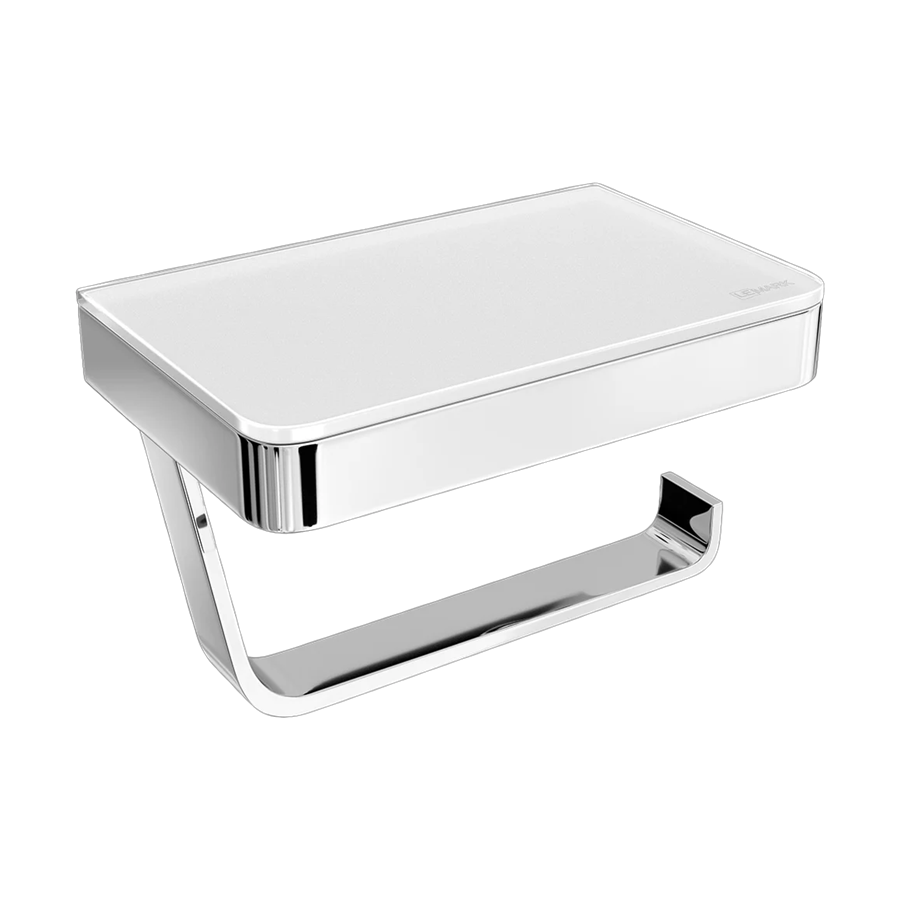 LeMark Glass Line Держатель для туалетной бумаги с полкой, хром/белое стекло Артикул: 9721028