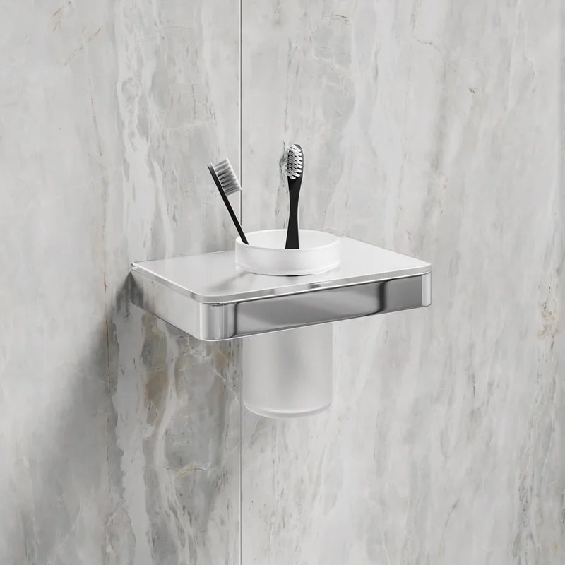 LeMark Glass Line 9731034 Стакан для зубных щёток с держателем, хром/белое стекло Артикул: 9731034