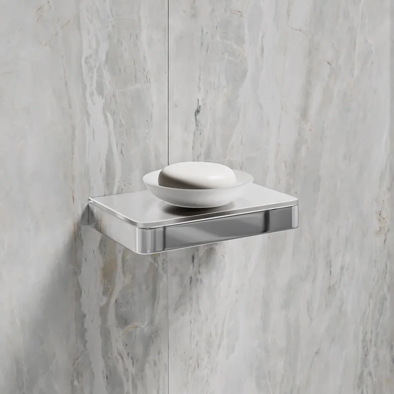 LeMark Glass Line 9741037 Мыльница с держателем, хром/белое стекло