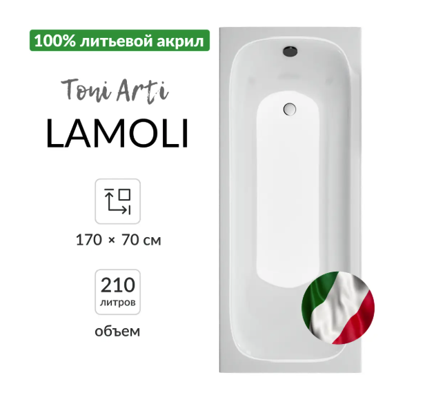 Акриловая ванна Toni Arti Lamoli TA-LI-17070 170x70 см, белая Артикул: TA-LI-17070
