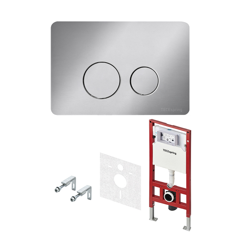 Комплектация: Застенный модуль TECEspring Панель смыва TECEspring Комплект крепежных элементов для установки модуля Прокладка звукоизоляционная для унитаза Фановый отвод для подключения к канализации DN110. Комплект патрубков для присоединения унитаза.