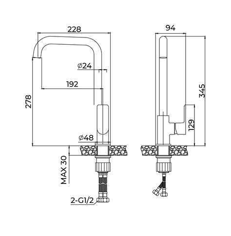 Смеситель для кухни боковой Avrora Atlas AV3621 шар с высоким поворотным изливом, хром Артикул: AV3621