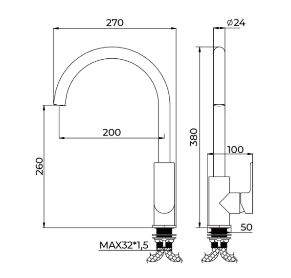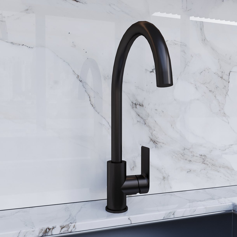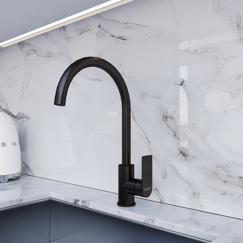 Смеситель для кухни Avrora Moon с высоким поворотным изливом, матовый черный Артикул: AV3521