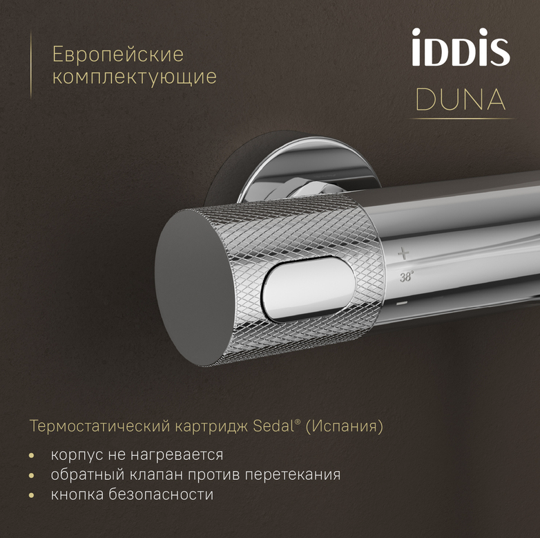 Смеситель для ванны с термостатом, глянцевый хром IDDIS Duna DUNSB02i74WA Артикул: DUNSB02i74WA