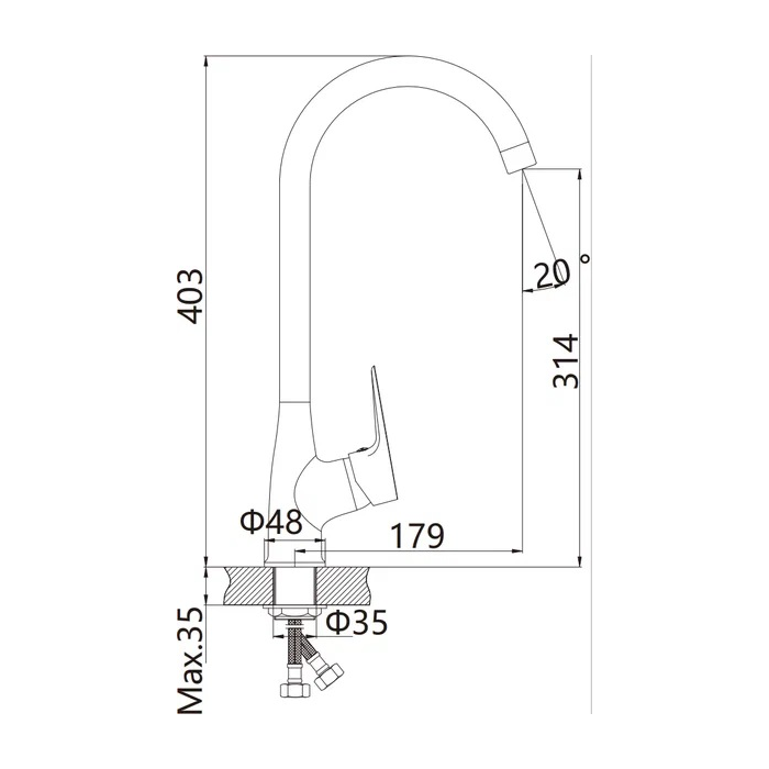 Смеситель для кухни Avrora Aton с высоким поворотным изливом, хром Артикул: AV5521