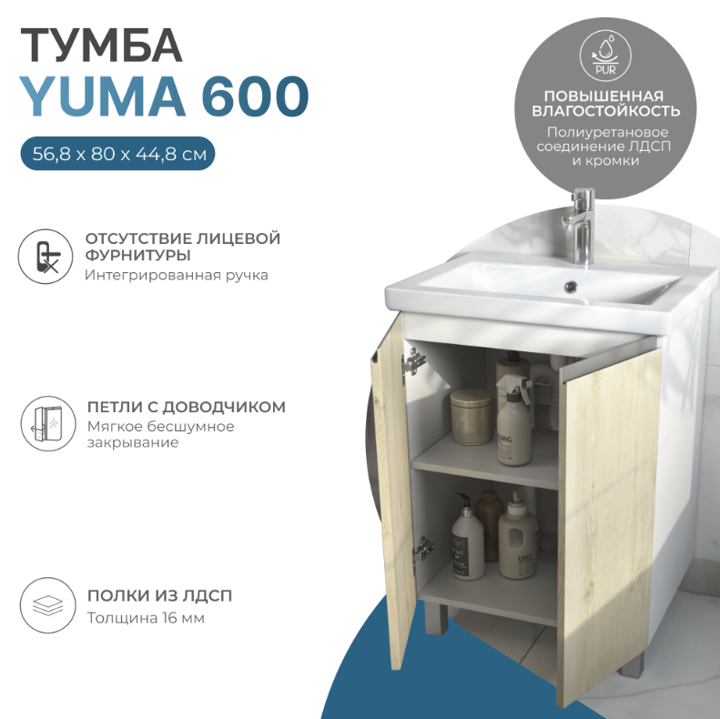6615  ₽   купить дешево Тумба напольная Vigo Yuma 600-2-0 дуб давос (под рак. Como 60) разобранная
