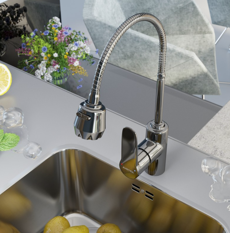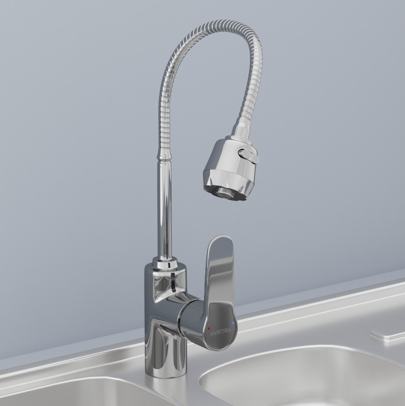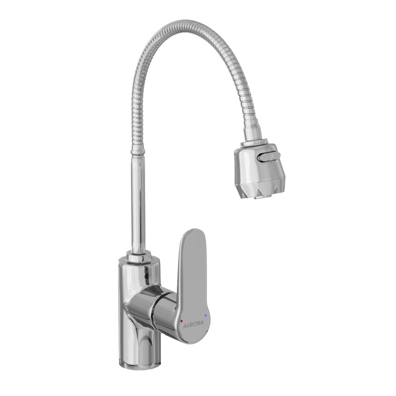 Смеситель для кухни Avrora Kitchen AV9001 с высоким гибким изливом, хром Артикул: AV9001