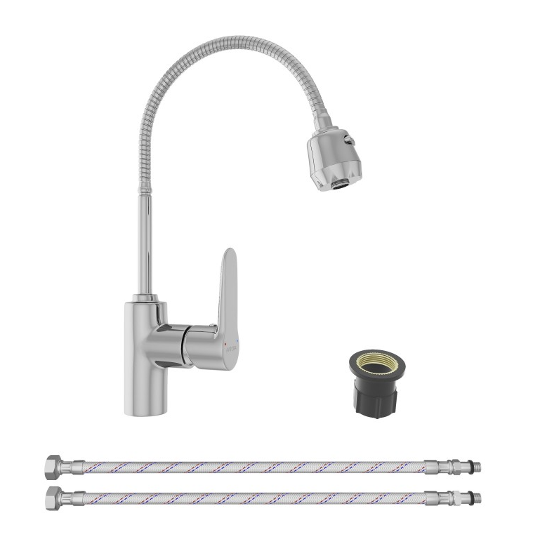 Материал: высококачественная латунь (безопасен для питьевой воды) Механизм: однорычажный, с поворотным гибким изливом (16 см) Установка: на раковину или столешницу Резьба подключения: 1/2" Комплектация: 1 шт