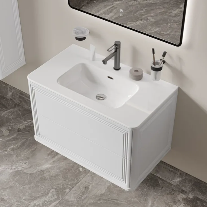 Вместительная подвесная тумба Oxford Neo с умывальником и выдвижными ящиками в элегантном стиле нео-классика с изящной фрезеровкой на фасадах и торцах. Идеально дополнит современные и классические интерьеры и станет настоящим украшением ванной.