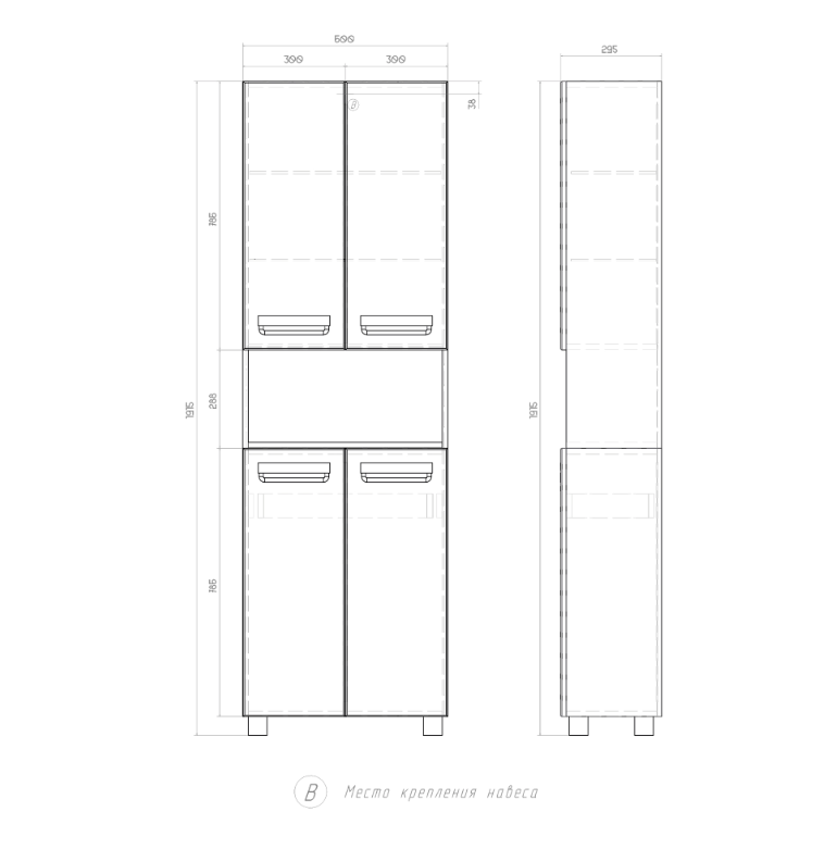 Пенал Vigo Plaza 600 с ТЕКСТИЛЬНОЙ бельевой корзиной, РАЗОБРАННЫЙ Артикул: 314