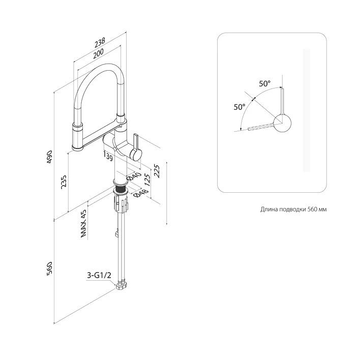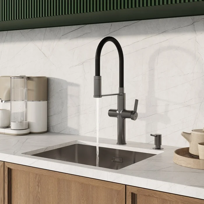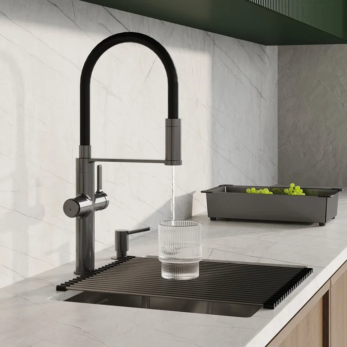 Смеситель для кухни Iddis Ikon с каналом для фильтрованной воды и гибким изливом, графит матовый Артикул: IKNGMFFi05